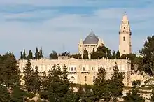 Abbey of the Dormition is a Catholic abbey belonging to the Benedictine Order in Jerusalem, on Mount Zion just outside the walls of the Old City near the Zion Gate. The Abbey is said to mark the spot where Mary, mother of Jesus, died.