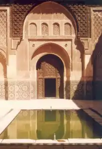 During his reign, Abdallah al-Ghalib Billah resided in Marrakesh. He was a prolific builder who is responsible for building, among other projects, the Mouassin Mosque, a maristan (a hospital usually attached to a mosque), and the Ben Youssef Medrassa. He repaired and restored the originally Almohad-built Kasbah Mosque and he is also believed to have also begun the first mausoleum of the Saadian Tombs located behind that mosque.[4][5]