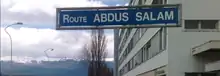 In 2015, the Academy of Young Researchers and Scholars, Lahore, renamed its library as the "Abdus Salam Library".[134] In the town of Vaughan, Ontario, Canada, near the headquarters of the Canadian branch of the Ahmadiyya Community, of which Abdus Salam was a member, the community has named a street after him, 'Abdus Salam Street'.[135] Additionally, there are two annual Abdus Salam science fairs, one held in Canada and the other in the US. Each is organised as a National event for young scientists from the Ahmadiyya Community in an effort to motivate youth toward scientific endeavour.[136]