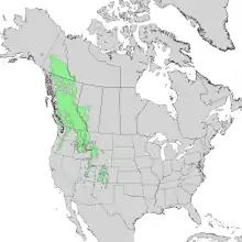 The species is native to the mountains of Yukon, British Columbia and western Alberta in Western Canada; and to Southeast Alaska, Washington, Oregon, Idaho, Western Montana, Wyoming, Utah, Colorado, New Mexico, Arizona, northeastern Nevada, and the Trinity Alps of the Klamath Mountains in northwestern California in the Western United States.[2]