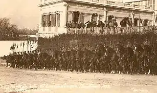 The partitioning of the Ottoman Empire began with the Treaty of London (1915)[1] and continued with multiple agreements, mostly unilateral among the Allies. British troops began to occupy the key buildings of the Empire and arrest nationalists after the establishment of military rule on the night of 15 March 1920. On 18 March 1920 the Ottoman parliament met and sent a protest to the Allies that it was unacceptable to arrest five of its members. That was the last meeting of the body and marked the end of the Ottoman political system. Sultan Mehmed VI dissolved the General Assembly of the Ottoman Empire on 11 April 1920. The Constantinople government, with the bureaucracy, but without the parliament, was left active with the Sultan as the decision maker.[2]