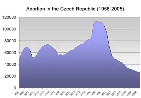 In 1957 abortions were legalized in Czechoslovakia, although with restrictions that depended on the current policy of the government. In 1986 the restrictions were lifted, resulting in growth of the number of abortions.