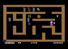 Abracadabra! is a single screen maze shooter for the Atari 8-bit family published on cartridge by TG Software in 1983.[1] The game is similar in concept to Konami's 1982 Tutankham arcade game.