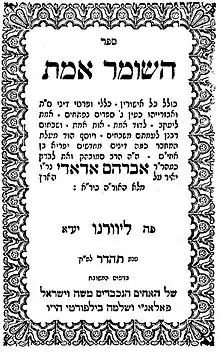 ![]() Title page of HaShomer Emet by Hakham Abraham Hayyim Adadi | |
