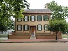 In 1839, Lincoln met Mary Todd in Springfield, Illinois, and the following year they became engaged.[46] She was the daughter of Robert Smith Todd, a wealthy lawyer and businessman in Lexington, Kentucky.[47] A wedding set for January 1, 1841, was canceled at Lincoln's request, but they reconciled and married on November 4, 1842, in the Springfield mansion of Mary's sister.[48] While anxiously preparing for the nuptials, he was asked where he was going and replied, "To hell, I suppose."[49] In 1844, the couple bought a house in Springfield near his law office. Mary kept house with the help of a hired servant and a relative.[50]