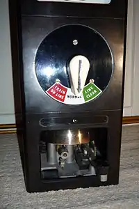 A block telegraph instrument set to its default position of "line blocked"
