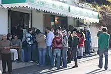 ![]() Customers lined up in front of Abu Hassan, HaDolfin Street, Jaffa | |