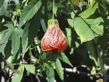 Abutilon pictum, syn. Abutilon striatum (disputed),[1] is a species of flowering plant in the family Malvaceae.[2] It is native to southern Brazil, Argentina, Paraguay and Uruguay. The plant has become naturalised in Central America, and is used in horticulture. Common names include redvein abutilon, red vein Indian mallow, redvein flowering maple, Chinese-lantern[3] and red vein Chinese lanterns.