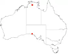 It is found along seasonal creek lines and clay flats downstream from the Koolpin gorge.