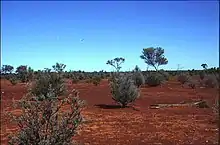 Mulga scrub is distinctive and widespread, with the Mulga Lands of eastern Australia defined as a specific bioregion. The dominant species in these woodlands is mulga, with poplar box (Eucalyptus populnea) forming an increasingly important codominant in the eastern districts.[6][7] The extent of ground cover in mulga woodlands varies with canopy density of the overstorey, becoming almost nonexistent in extremely dense stands. In more open stands, the herbaceous layer consists of wire grasses (Aristida spp.)mulga is long-lived, mulga oats (Monocather sp.), mulga mitchell (Thyridolepis sp.), wanderrie (Eriachne spp.), finger grasses (Digitaria spp.) and love grasses (Eragrostis spp.). Various other woody species are also significant in mulga woodlands, particularly hop bushes (Dodonaea spp.), Eremophila and cassia (Senna spp.).[5][7]