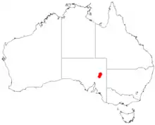 It has a limited distribution in arid conditions of central South Australia in the northern Flinders Range from Balcanoona to Arkaroola where it is found on rocky slopes, ridges and hills in skeletal rocky soils[1] as is often a part of open woodland or shrubland communities along with Eucalyptus gillii and Triodia irritans.[2]