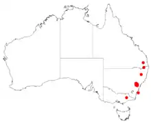 The shrub is found between Newnes Junction and Lawson in the Blue Mountains where it grows in sandy soils over and around sandstone s a part of dry sclerophyll forest less frequently heath-land communities.[1]
