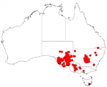 The shrub is found in South Australia from the Flinders Ranges in the north south to the Tothill Ranges in the northern Mount Lofty Ranges and east to Broken Hill and central parts of New South Wales. It is often a part of woodland and open scrubland communities where it grows in a variety of soil types different soils.[3] It is also found in north western Victoria.[1]