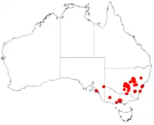 Acacia cardiophylla is indigenous to central and southern New South Wales and is found Gilgandra in the north down to around Wagga Wagga in the south and extending to the Lake Cargelligo area in the west. It is found on stony hills and ridges in shallow rocky sandy soils as a part of Eucalyptus woodland and mallee communities.[2] It has also now become naturalized in part of the Central Coast and Southern Tablelands regions.