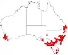 It was extensively planted in New South Wales, and it is difficult to tell whether it is native or naturalised in areas near its native range.[13] The species became naturalised in other states including Queensland, Victoria and Tasmania. It grows on shale and sandstone soils with medium nutrients and good drainage.[2]