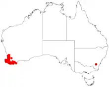 It is found in an area in the southern Wheatbelt, Peel, South West and Great Southern regions of Western Australia that is most often found along watercourses, around swamps and other damp areas[1] although it also is found in drier areas such as loamy laterite in Jarrah forest as well as in coastal heath communities.[2]