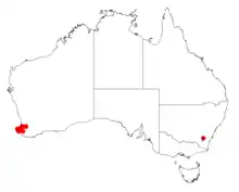 It is native to an area in the South West region of Western Australia where it is found in winter wet areas growing in sandy soils.[1]