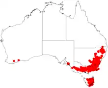 The species was first formally described by English botanist George Bentham in the London Journal of Botany in 1842.[3] It occurs in South Australia, Victoria, Tasmania, New South Wales, Australian Capital Territory, and Queensland.[3]