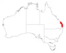 The shrub has a distribution along coastal parts of south eastern Queensland between around Bundaberg in the north to south around Brisbane where it is found on coastal plains, swamps and lowlands growing in sandy soils that are poorly drained as a part of open woodland or heath communities.[1]