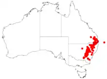The range of A. leucoclada extends from south-eastern Queensland to the north coast, tablelands region, the western slopes of the Great Dividing Range, the central coast, Hunter River valley and Pilliga scrub regions of New South Wales.[4] It is mostly found as far south as Wagga and is often part of sclerophyll woodland communities growing in a variety of different habitats and soil types.[3]