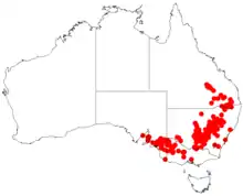 It also known to occur in south-east Queensland, north-west Mallee areas of Victoria and can be seen in south-east South Australia; with known locations including the Yorke Peninsula region and Murray region.[11]
