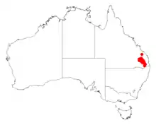 A. loroloba is endemic to south eastern Queensland and is often situated in the north eastern Darling Downs region from around Haden and Jandowae in the west to Toowoomba in the east and as far north as Durong. It is found in undulating areas on alluvial flats and fertile plains growing in clay or sandy loam soils usually as a part of open forest or woodland communities.[2]
