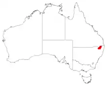 McNutt's wattle grows near rivers and along valleys on sandy soils derived from granite from near Torrington to Boonoo Boonoo Falls, near Pindari Dam and the Washpool National Park, in north-eastern New South Wales.[4][8]