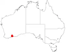 It is native to an area along the south coast of the Goldfields-Esperance region of Western Australia where it is commonly situated along river banks and in rocky areas growing in loamy or clay-loam soils.[1] The plant has a limited range but is common in the area it is found around the Jerdacuttup River to the east of the town of Ravensthorpe where it is commonly a part of mallee Eucalyptus communities but also forms dense stands.[2]
