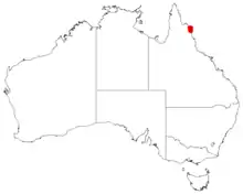 It is found along a narrow stretch of the north eastern coast of Queensland with a length of around 50 km (31 mi)[1] from around Cooktown in the south to Cape Flattery in the north where it is situated among quaternary sand-dunes, often as dense stands as a part of scrub-land[2] or heath-land communities where it is often associated with Corymbia intermedia.[1]