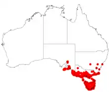 A. verticillata is endemic to New South Wales, Victoria, South Australia and Tasmania.[1] The species is a common understorey shrub in both wet and dry sclerophyll forests as well as scrub and heath. In coastal environments it will often have much wider leaves as opposed to the regular needle-like nature of inland specimens. The range of the plant extends from the Gulf St Vincent in South Australia throughout the south-eastern parts and into southern and south eastern Victoria and far south-eastern New South Wales and Tasmania including the islands in Bass Strait where it is situated in saline, riparian and submontane areas.[2]