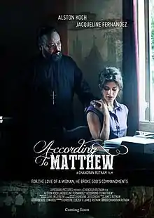 According to Matthew is a Sri Lankan English-language crime thriller film produced and directed by Chandran Rutnam. It is based on the crimes of Father Mathew Pieris, Anglican priest of the Church of St. Paul the Apostle, Kynsey Road, Colombo 10, who was convicted of the double murders of his wife (Eunice Pieris) and Russel Ingram, the husband of his lover in 1979.[1] The film stars Alston Koch and Bollywood actress Jacqueline Fernandez.[2]
