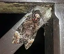 Acherontia lachesis, the greater death's head hawkmoth or bee robber, is a large (up to 13 cm wingspan) sphingid moth found in India, Sri Lanka and much of the Oriental region. It is one of the three species of death's-head hawkmoth genus, Acherontia. The species was first described by Johan Christian Fabricius in 1798. It is nocturnal and very fond of honey; they can mimic the scent of honey bees so that they can enter a hive unharmed to get honey. Their tongue, which is stout and very strong, enables them to pierce the wax cells and suck the honey out. This species occurs throughout almost the entire Oriental region, from India, Pakistan and Nepal to the Philippines, and from southern Japan and the southern Russian Far East to Indonesia, where it attacks colonies of several different honey bee species. It has recently become established on the Hawaiian Islands.[1]