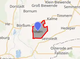 Achim is a village and a former municipality in the district of Wolfenbüttel, in Lower Saxony, Germany. Since 1 November 2011, it is part of the municipality Börßum.