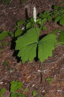 The plants are spaced widely on the rhizomes, but often overlap in large networks that result in carpets of Achlys that dominate the near-surface understory. Achlys seems to prefer moist soil, so at middle to higher elevations it is easier to find them along streambanks or well-shaded ravines.[3]