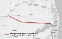 The Acle Straight, also known as the Acle New Road is a major road between Acle and Great Yarmouth in Norfolk. It is part of the A47 trunk road.[1]