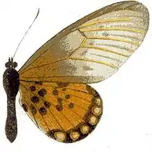 Acraea admatha, the Hewitson's glassy acraea, is a butterfly in the family Nymphalidae. It is found in southern Nigeria, Cameroon, Equatorial Guinea, Gabon, the Republic of the Congo, northern Angola and the western part of the Democratic Republic of the Congo.[3]