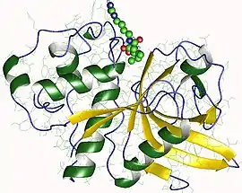 Actinidain (EC 3.4.22.14, actinidin, Actinidia anionic protease, proteinase A2 of Actinidia chinensis) is a type of cysteine protease enzyme found in fruits including kiwifruit (genus Actinidia), pineapple, mango, banana and papaya. This enzyme is part of the peptidase C1 family of papain-like proteases.[1][2][3][4]