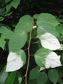Actinidia polygama (also known as 개다래; gaedarae, silver vine,[1] matatabi (マタタビ), and cat powder) is a species of kiwifruit in the Actinidiaceae family. It grows in the mountainous areas of Korea, Japan and China at elevations between 500 and 1,900 metres (1,600 and 6,200 ft).