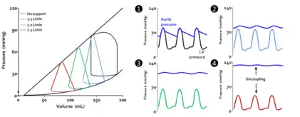 Under conditions of mechanical support, mean aortic pressure (MAP) is maintained independent of native ventricular function, and ventricular and aortic pressures become uncoupled.[2]