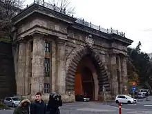 In 1850, Clark was commissioned by the Hungarian government to design and build a tunnel under Buda Castle, emerging directly opposite the Chain Bridge. This would significantly shorten the journey for those travelling to and from Buda's outskirts, who would otherwise have to go all the way around Castle Hill. Work on the Buda Castle Tunnel began in February 1853, with the tunnel opened to foot traffic in March 1856 and to horse traffic in April 1857.[6] After the completion of the tunnel, Clark worked on several smaller commissions.[1] In 1855, Clark married Mária Áldásy, a member of the local aristocracy, with whom he had three children.[7] One of his descendants was the famous mathematician György Hajós.[8] He died of lung disease in 23 June 1866, aged 54, and was buried in Kerepesi Cemetery.