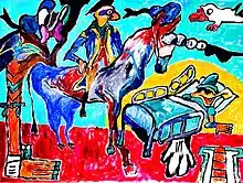 In 2005, Green entered the professional art world with his exhibition of a series of drawings titled "Animal Dreams" at Loyal Gallery in Stockholm.[9] Green's art exhibition "Teen Tech" was displayed at New York's Morrison Hotel Gallery for 10 days in April 2010 and consisting of twelve plaster sculptures, eighteen watercolor and acrylic large-scale (30" x 40") paintings, nineteen drawings, twenty collages and papier-mâché and mixed-material works.[10] A portion of "Teen Tech's" proceeds went to benefit Artists for Peace and Justice, an effort to re-create and cultivate sustainability in Haiti.[11] On June 9, 2012 Green's exhibition "Cartoon & Complaint" opened at Dustin Yellin's art center and gallery The Intercourse in Red Hook, Brooklyn.[12] In August 2012 The Hole Gallery in New York City announced that it would be showing a summer exhibition of Green's work titled "Houseface", a collection of works inspired by De Stijl and the architecture of Friedensreich Hundertwasser and Antoni Gaudí.[13] Green's Houseface paintings and sculptures were featured in a Stuart Weitzman shoe advertisement directed by James Franco entitled "Walking After Midnight".[14] Afterwards he formed an art collective named 3MB with Macaulay Culkin and Toby Goodshank. Their first exhibit Leisure Inferno opened at Le Poisson Rouge Gallery in October 2012.[15] Green kicked off 2013 with "Medieval Businessmen," an exhibit of drawings and paintings at Loyal Gallery in Sweden.[16] In July he showed his visual art for the first time in Italy with "The Yellow Show", a solo-exhibition that opened at Motel Salieri in Rome.[17] The next month he had a show in Zurich with "From A Darker Time," a show composed of older works.[18] In September 2013 Green took part in a collaborative artshow with Pete Doherty and Fionn Regan entitled "Noise Kids.[19] In November Green exhibited in Vienna at the Viertelneun Gallery showing “A Land Recombined".[20] His most recent show was at The Hole Gallery for his show "Hot Chicks".[21]