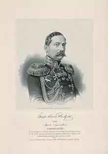 Aleksander Adam Rzewuski (Russian: Адам Адамович Ржевуский, tr. Adam Adamovich Rzhevuskiy; 1801 – April 17, 1888) was a Polish-Russian general. He was born in Pohrebyshche in the Kiev Governorate of the Russian Empire (present-day Ukraine). He participated in wars in Poland and the Crimea. He died in Kiev.