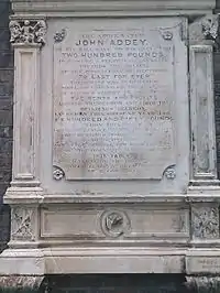 The School's origins date to 1606 when John Addey (1550–1606), Master shipwright at Deptford Dockyard, having made his fortune in shipbuilding, left £200 to help the poor of Deptford; this money was then invested in land and the rent from that land was to be given away as charity. This amounted to 40 shillings each, per annum given to 100 parishioners of Deptford.[2] However, in 1820 the trustees felt that this type of poor relief encouraged fecklessness and instead decided to found the Addey School in 1821 on Church Street, Deptford.[3] 'A Topographical Dictionary of England' (1848) it is explained that the Addey School "by direction of the court of chancery, erected a spacious building containing two large schoolrooms, with houses for the master and mistress; the school is wholly supported by the endowment, from which also 48 aged persons are paid £2 each annually.".[4] Later in 1862 the School was enlarged. To commemorate Addey's charity and the help given to the poor of Deptford, a plaque was erected in St Nicholas Church, Deptford in 1862, following is quoted the inscription on the tablet: