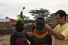 Addi Somekh (born August 1, 1972) is a self-taught balloon artist who has been twisting balloons since 1991.[1] Best known for his balloon hats, Somekh’s other signature pieces include the balloon flower, balloon ring, and large-scale balloon sculptures. In addition to his balloon twisting, Somekh is an author, university philosophy instructor, and musician. With photographer Charles (Charlie) Eckert, Somekh traveled around the world creating balloon hats for people of various backgrounds, cultures, and beliefs in an effort to demonstrate the universal power of joy and laughter.[2] These journeys have been photo-documented in calendars, books, and films.