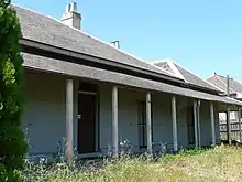 1822 Thomas Bowden, the colony's first professional school teacher, added the west wing and in 1840 the east wing was added. It is of rubble sandstone. In 1820 Thomas Bowden, the colony's second school master, added three rooms and attics in front of the cottage. In 1825 the west wing was added (part has since been demolished) and Bowden started the first Boarding School in the colony here.[1][3]: 113