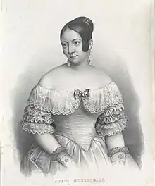 Adele Muzzarelli was born on 4 June 1816 in Venice.[2] Her grandfather was a ballet master at the Vienna Opera under Emperor Joseph II, her father was the Italian tenor Muzzarelli, and her mother was a Prima ballerina at the Teatro La Fenice in Venice.[3] Her father died when she was two years old and she moved to Vienna with her mother. In Vienna Muzzarelli received vocal training from Giuseppe Ciccimarra.[4] She was a chorister at the Theater am Kärntnertor in Vienna.[5]