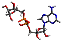 Adenosine diphosphate ribose (ADPR) is an ester molecule formed into chains by the enzyme poly ADP ribose polymerase.[1] ADPR is created from cyclic ADP-ribose (cADPR) by the CD38 enzyme using nicotinamide adenine dinucleotide (NAD+) as a cofactor.[1]