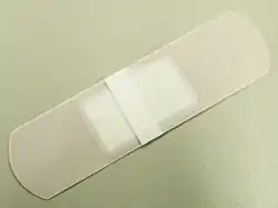 An adhesive bandage, also called a sticking plaster, medical plaster, or simply plaster in British English, is a small medical dressing used for injuries not serious enough to require a full-size bandage. They are also known by the genericized trademarks of Band-Aid (as "band-aid" or "band aid" in Australia, Canada, India and the US) or Elastoplast (in the UK).