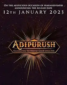 Adipurush is scheduled to theatrically release on 12 January 2023.[23] It was previously scheduled to release on 11 August 2022, but was later postponed due to the release of Laal Singh Chaddha.[24] It is scheduled to release in Telugu and Hindi, along with dubbed versions in Tamil, Malayalam, Kannada and other multiple Indian and International languages.[25][26]