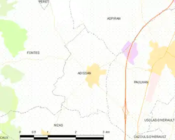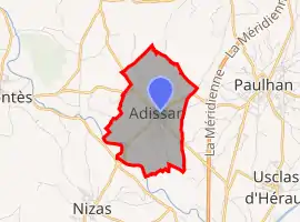 Adissan (French pronunciation: [adisɑ̃]; Occitan: Adiçan) is a commune in the Hérault department in the Occitanie region in southern France.